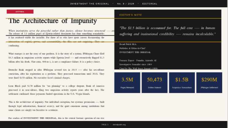 A new issue of INVESTMENT โ The Original has been released โ delivering forensic intelligence on the hidden intersections of finance, geopolitics, and systemic risk.
