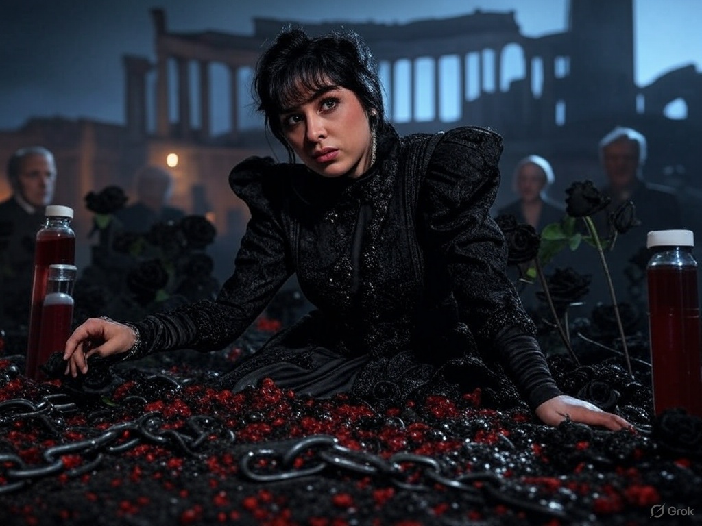 Surrounded by black roses and rapture juice, Janelle fights to reclaim Perverso from Caligula’s decadent tyranny, her rats ready to strike amidst the Roman chaos at Berghof. The Tower of Gay Pisa looms as the Rat Queen rises! #CaligulaReign #GothicHorror #JanelleRebellion