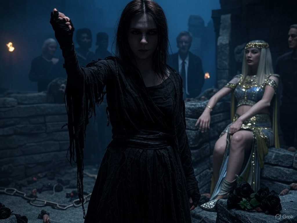 Amidst chains and black roses, Janelle defies Cleopatra’s enchanting allure on the Perverso set, her rats poised to break the Egyptian queen’s spell at Berghof. The Tower of Gay Pisa looms as the Rat Queen fights for her throne! #CleopatraSeduction #GothicHorror #JanelleRebellion