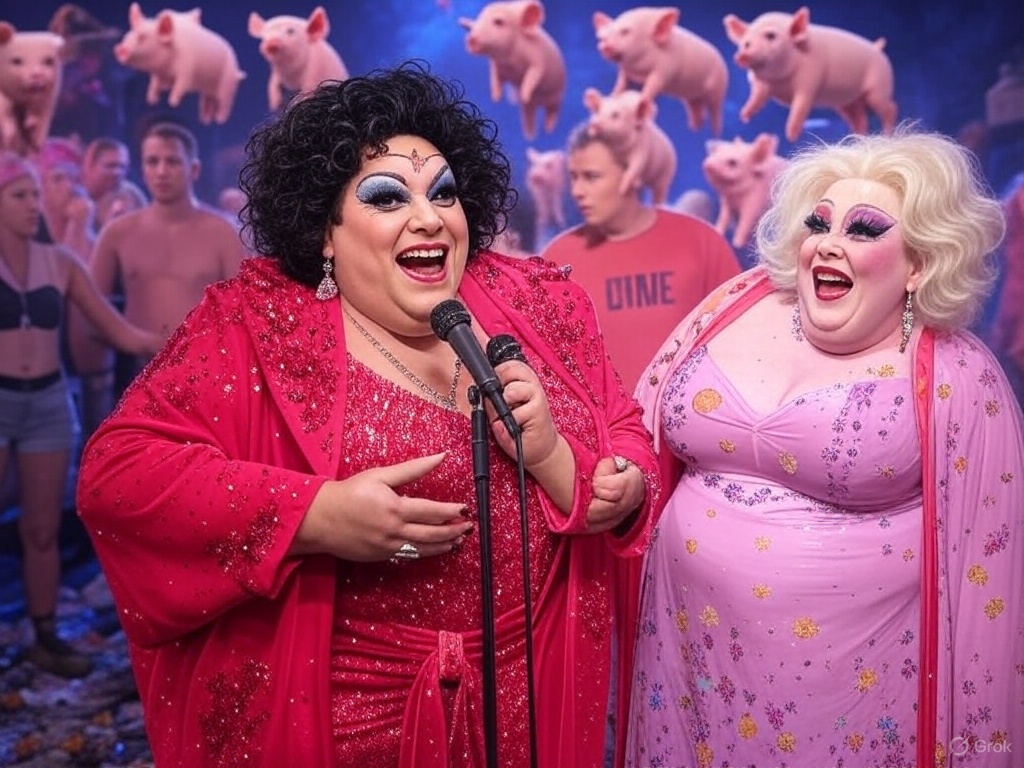 - Divine: The drag icon struts in a sequined gown, fish-bombs in her cleavage. “Filth is my gospel—preach it!” she booms, tossing glitter.