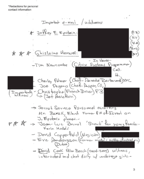The declassified materials include flight logs, an address book, an evidence list, and a list labeled “MASSEUSES.” While many of these documents had been leaked previously, this is the first time they have been officially released by the U.S. government.