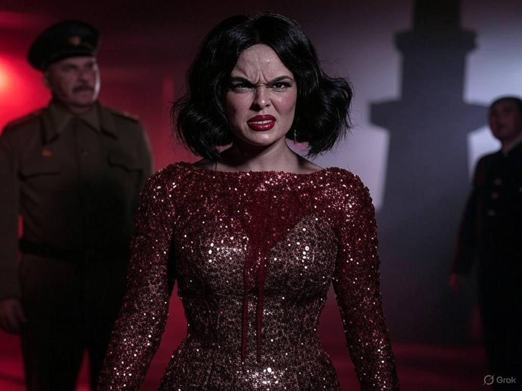 It’s April 13, 2025, and Berghof is still reeling from Vlad the Impaler’s blood-soaked terror. The Perverso set is a gruesome mess—spiked poles and blood rivers have left scars on the floor, the fart-throne is sticky with rapture juice and gore, and the Tower of Gay Pisa outside leans further, its erection-stink now mixed with the metallic scent of blood. The grand hall is filled with the crew’s attempts to clean up, but the sound of marching boots and the clatter of tanks echoes through the doors, followed by a cold, commanding voice. Joseph Stalin, the Soviet dictator known for his purges and authoritarian rule, has arrived, bringing a chilling, oppressive energy that threatens to crush Janelle’s empire of filth under his iron grip.