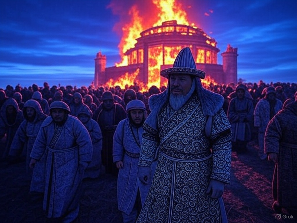 Genghis, astride his glowing steed, surveys the Berghof with a sneer. “This mountain court reeks of weakness,” he declares, his voice booming with an otherworldly echo. “A paper empire, ripe for the taking!” His scouts, led by Subutai, report the terrain: dense forests and narrow alpine paths, ill-suited for traditional Mongol cavalry tactics. But the Perverso energy has granted them new powers—their horses can now gallop up vertical cliffs, and their arrows can melt stone. Genghis orders an assault, aiming to crush the Berghof and its inhabitants as a symbolic victory over this strange new era.