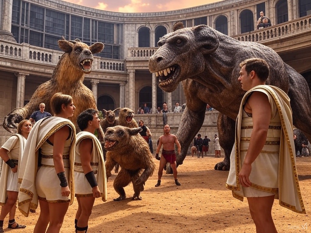 “Time Travelers Clash in Rome: A Gladiatorial Spectacle for the Ages!”