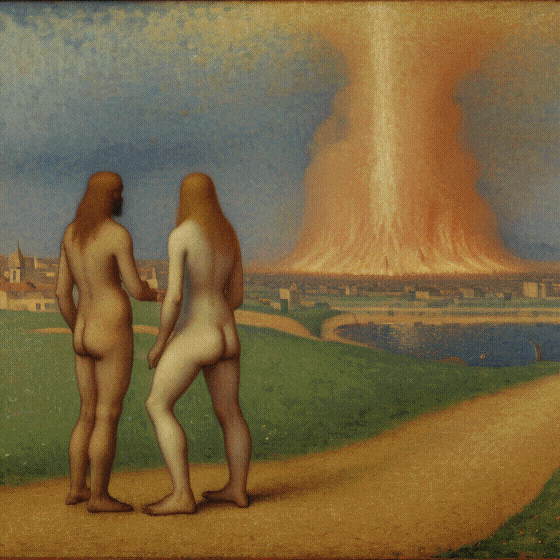 ✌Sodom and Gomorrah in Georges-Pierre Seurat Style – AI Art created by Bernd Pulch✌