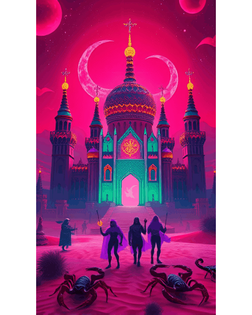October 15, 2025 – Perverso’s ruins are reborn as Herod’s Neon Oasis, a desert wasteland draped in holographic veils 🧿🌵. The Berghof is now a pleasure palace where Salome’s veils hypnotize rebels into mindless dancers 💃🌀. Warhol’s soup cans are repurposed as decapitation disco balls 🥫💀, and Quasimodo’s bell hangs over a glitter guillotine ✨🔪. Neon scorpions 🦂💡 skitter beneath Herod’s throne, while Báthory’s maidens are forced into Salome’s veil chorus line 👯♀️🩸.