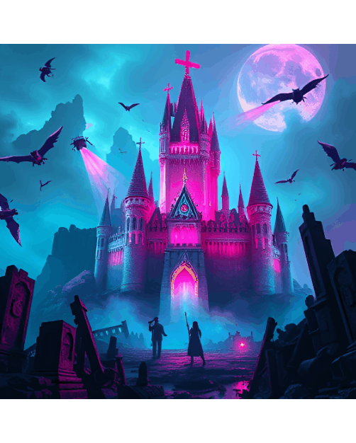 September 30, 2025 – Quasimodo’s shattered court festers under a crimson neon moon 🌕🔴. The Berghof ruins are rebuilt as Dracula’s Neon Carpathian Castle, its spires dripping LED blood 🩸💡 and Warhol’s soup cans repurposed as floating glitter-coffins 🥫⚰️. The Tower of Gay Pisa tilts under swarms of cyber-bats 🦇🤖, while Janelle’s throne is encircled by glitter-stake turrets ✨🔫. Báthory’s vampiric maidens merge with Dracula’s brides, their lace gowns glowing with neon fangs 👗🦷. A disco ball made from Pol Pot’s Year Zero skull pulses to synth-laced organ music 💀🎹.