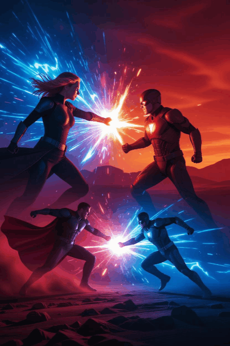 The Ego Eclipse scarred Mars, but The Time Warriors’ Dawn introduces a time warp that changes everything! 😱🔥 Savitar (inspired by DC Comics), a Speedster God with a dark past, arrives on Mars to seize control of the Chrome Nexus. Janelle, ruler of the Pleasure Domes, fights to save her empire, while Ehlers’ love for her is complicated by a Toronto Triangle with Salome. 🕒🐍🌍 A transgender traitor within the ranks threatens to tip the balance, pulling all saga legends into a temporal maelstrom! ⚔️💥