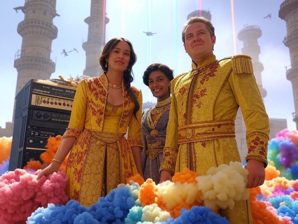 But the Sky Police return, drawn by the chaos. “You’re under arrest for aerial terrorism!” Commander Mintz bellows from his airship, firing purity-beams at the mess. Janelle counters with her fog, turning the beams into disco lights. E. dith hurls rapture-tokens like grenades, clogging the ships’ vents. Dumb Tom lassos a drone, crashing it into Mintz’s hull, while Beatrix’s fart-shields deflect the mint bombs.