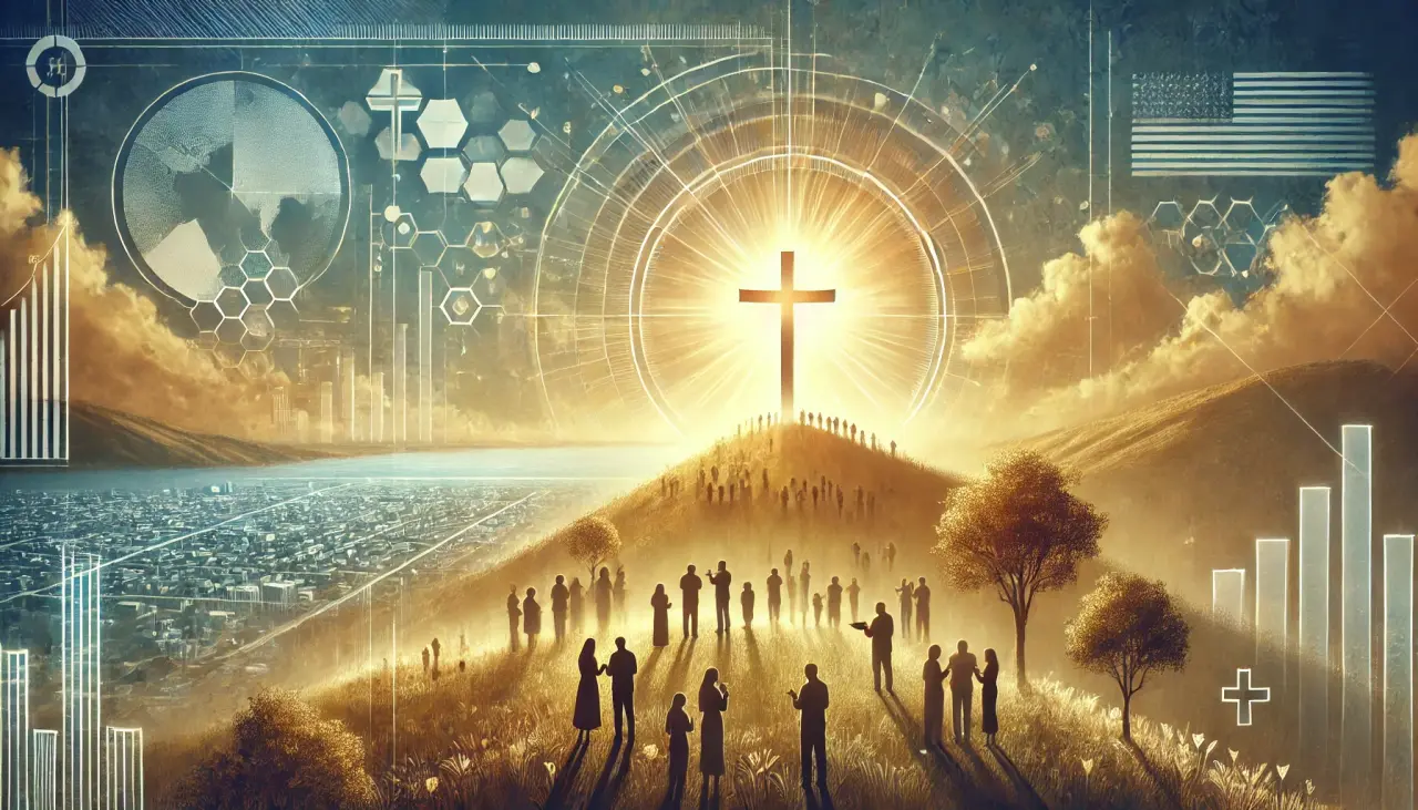 “An inspiring depiction of Christian hope and faith, symbolizing unity, renewal, and spiritual guidance in a complex modern world.”