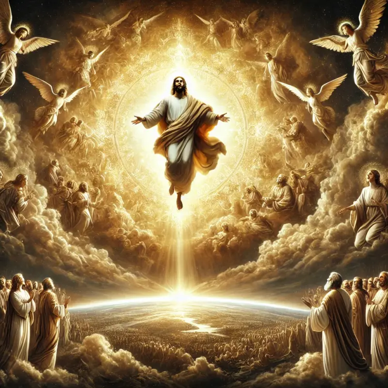 #SecondAdvent#JesusChrist#HeavenlyGlory#BiblicalScene#ChristianFaith#CloudsOfHeaven#DivineLight#AngelsInHeaven#SpiritualArt#GloriousReturn#RevelationScene#ChristianImagery#HopeAndRedemption#Eschatology#BiblicalPromise