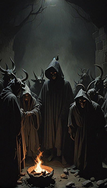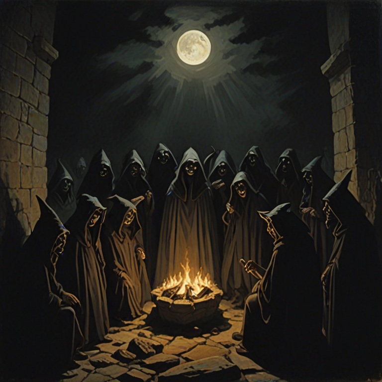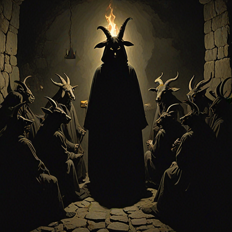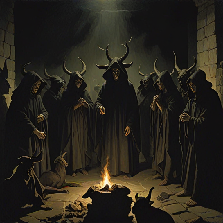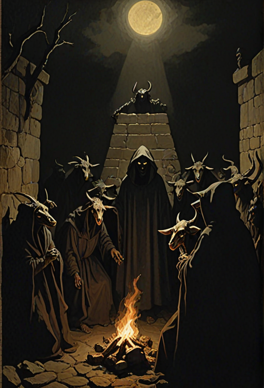With the rise of AI-generated art, many digital artists have sought to capture the sinister essence of Goyaโs work while incorporating contemporary elements. A modern AI-generated interpretation of Witchesโ Sabbath envisions a gothic gathering illuminated by flickering candlelight, with hooded figures encircling a large black goat. The details include ancient occult symbols, arcane texts scattered across the ritual space, and mysterious shadows stretching across the walls.