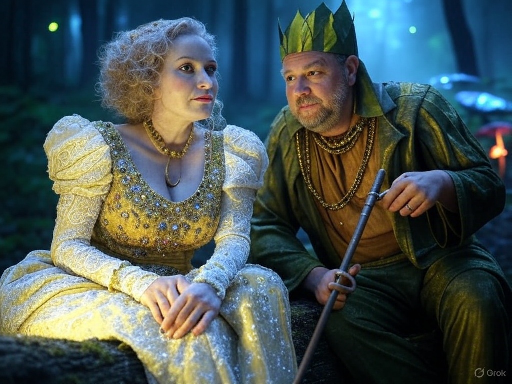 Dumb Tom, swinging from his balloon, lassos clouds, yelling, “Gonna frame the sky!” E. dith pounces, her gown of stitched IOUs fluttering, pinning him against a cactus in a lusty grapple—Tom squeaks, “Not the art!” Murky Jan, fabulous in sequined cape and heels, struts through the gallery, stirring his cauldron into a pink-and-gold brew. “This Louvre needs sultry stink, loves!” he purrs, unleashing a musky mist that sends E. dith chasing him, her nympho-radar pinging.