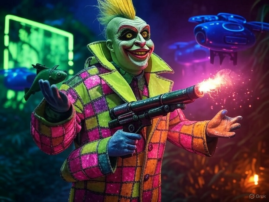 Harpo Marx II: ๐คซ Silencing drones with a neon kazoo.