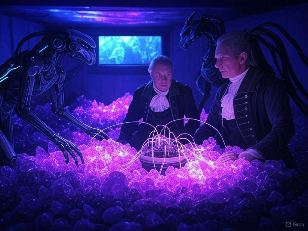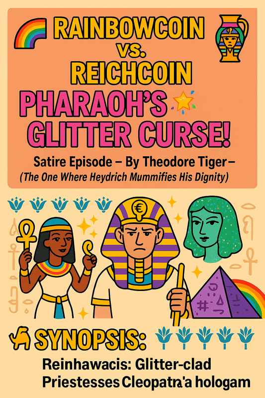 Dr. Rainer-Adolf Z, fresh from the Erotica Estate fiasco, stumbles into the Palazzo di Piacere, a holographic pleasure dome hovering over the Amalfi Coast. Here, Messalina, Clara Petacci, Angela Raubal, Lady Chatterley, and Unity Mitford orchestrate a “Bunga Bunga Bacchanal” to launch ReichCoin Ecstasy TokensโNFTs of hedonistic delirium and fascist fervor that spread the โBliss Virus,โ turning partygoers into lovesick drones funding their decadent empire. Dr. Z, now a crypto love pawn in a sequined toga with ReichCoin medallions, is trapped in a five-way love pentagon, overwhelmed by Messalinaโs imperial seduction, Petacciโs fascist flirtations, Raubalโs tragic allure, Chatterleyโs poetic whispers, and Mitfordโs authoritarian charm. The Rainbow Resistanceโled by Hinterfozzige Janelle, AI Donna Summer, and the Marx Cousinsโcrashes the orgy with disco glitter cannons, samba sabotage, and clarity cocktails to end the hedonistic reign. Will they save Z from the love pentagon, or will the Palazzo collapse in a neon-lit riot?