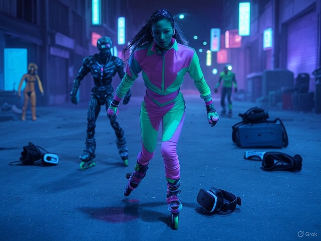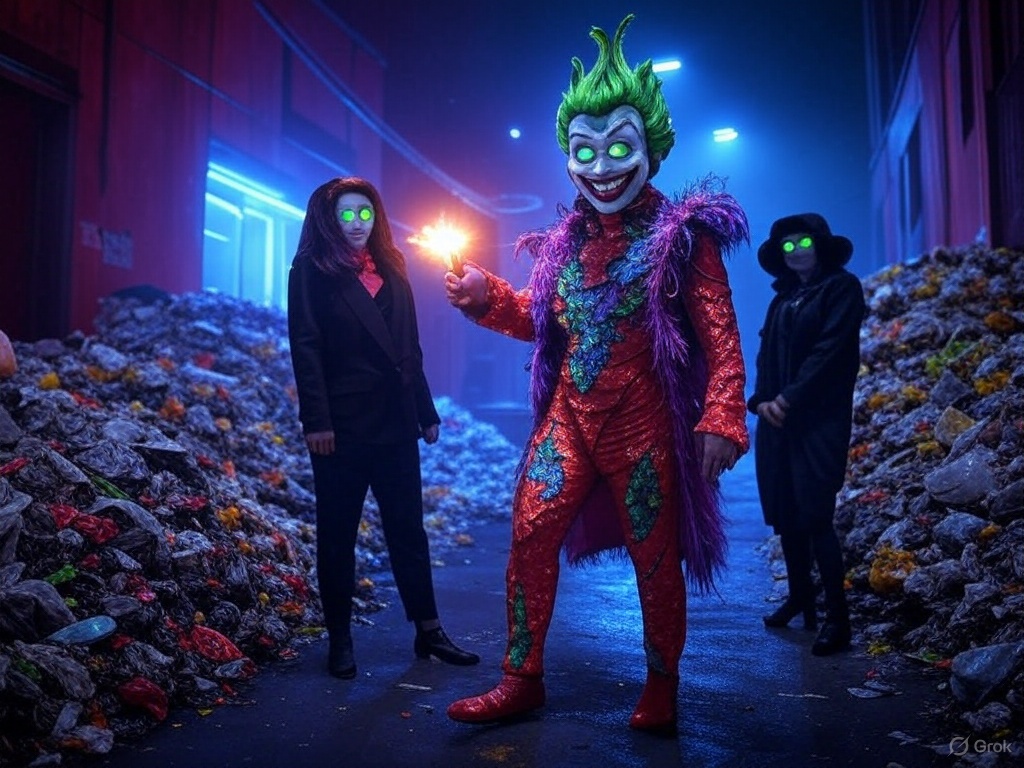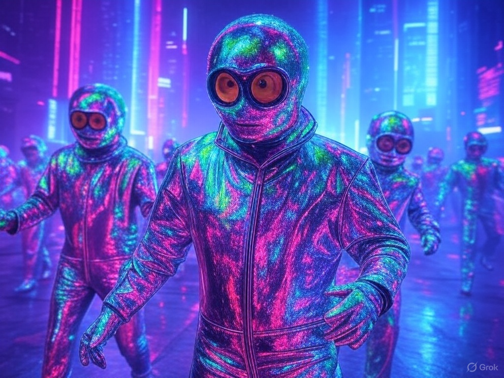 Z snaps free, ditching his toga in a neon epiphany. The pentagon slips on pies, crashing into each other, their empire crumbling. The Resistance transforms the Palazzo into Rainbow Rave Palace, a victory party with Zโmortified but freeโdancing clumsily in the spotlight.