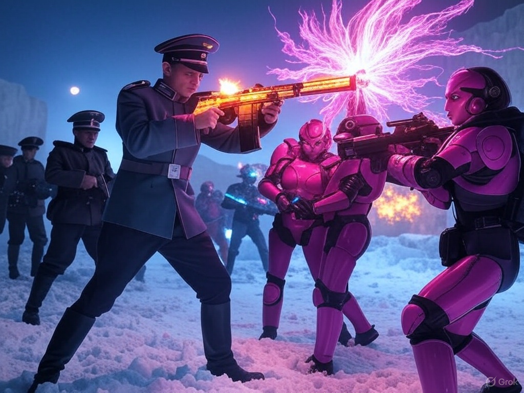 Himmlerโs rogue faction attacks from the sidelines, creating a three-way battle. Heydrich fights back, his icy aura freezing the agoraโs marble columns. But the โOlympian Glowโ scent fills the air, breaking his spell and rallying the rebels. The Brazilian Escorts charge in with rainbow scrolls, unrolling them to release a swarm of glitter doves that bury Heydrich and Himmler in a sparkling avalanche.