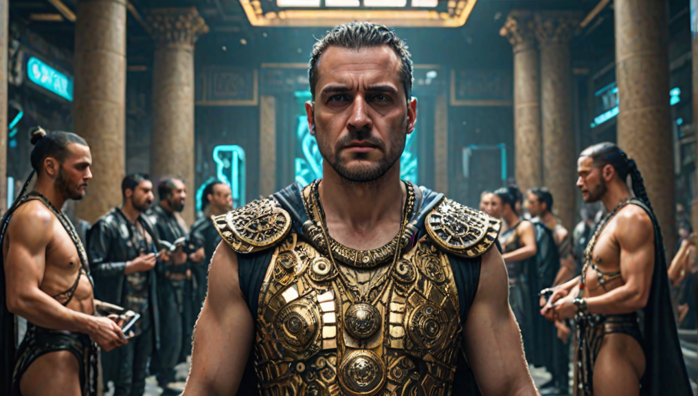 Heydrich stands in the agora, overseeing the ReichCoin Symposium with a smug grin, his wastepaper philosophers dominating the debates. But the RainbowCoin rebellion storms the agora, led by Janelle, Mother Iokaste-Monica, and the Brazilian Escorts. Their glitter lyres blind the philosophers, and the Desert Nuns spray glitter water from their amphorae, disabling the hellfire lyres.