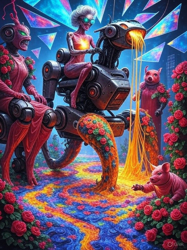 Andreas’ Debt-Swine Stampede 4.0 (70% bacon, 30% existential angst 🐖🔥) charges through rivers of hallucinogenic crude, as Edith’s dragon-wisp 💩🐉 and Dr. No’s heartware malware clash in a neon-grease rave. Love’s a slippery beast… grab the degreaser.