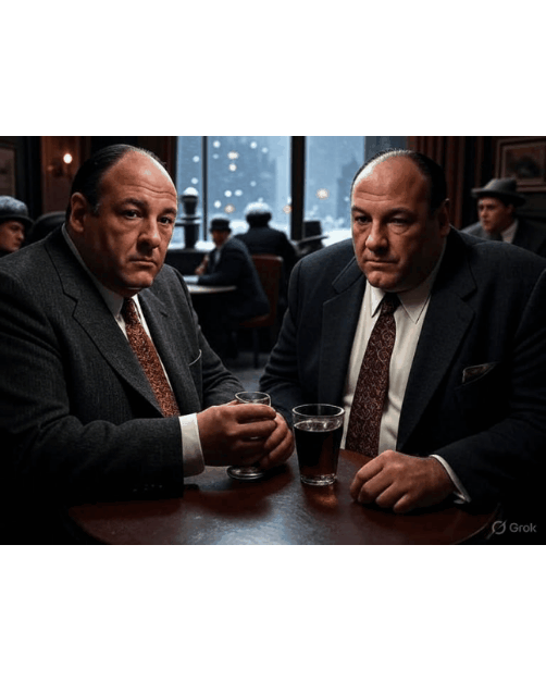 Bronkowiz (Betamax pile now with Harlem tapes) projects holograms of daylight blasts. Tony Soprano (James Gandolfini archive, in fur therapy) quips, “This affair? It’s like a machine gunādaylight violent!” š¶ļøš