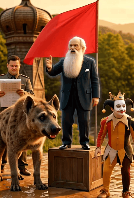 THE BIG HYENA knocked. The door opened. Out steppedโ€ฆ LENIN. Vladimir Ilyich Lenin. In full. With beard. With suit. With REVOLUTION in his eyes. ๐Ÿ‘จ๐Ÿฆณโ˜ญ