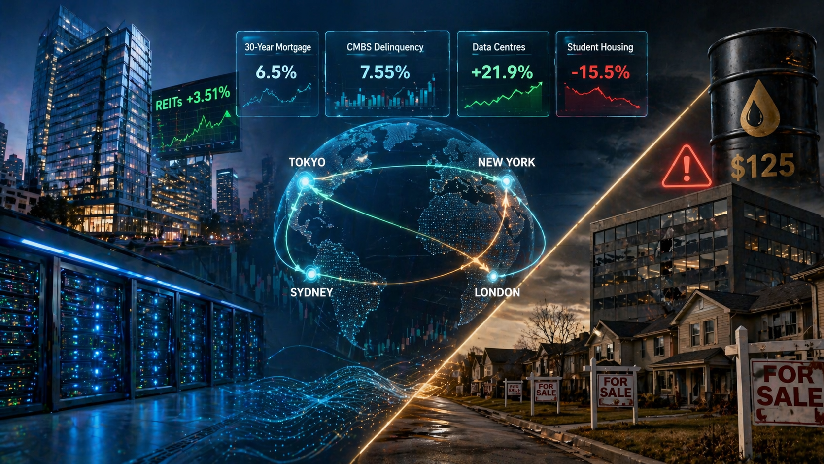 1. Thematic precision trumps broad beta exposure. Data centres (+21.9%) and senior housing show structural tailwinds; student housing (-15.5%) and secondary office face persistent headwinds.