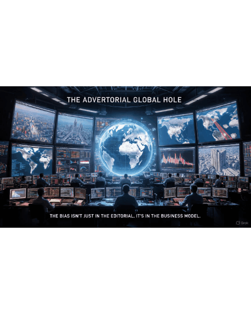 The “Global Hole” in financial news isn’t an accident—it’s a business model. This cinematic visualization reveals how advertorial revenue from developed markets dictates global narratives, biases coverage, and shadows the truth.