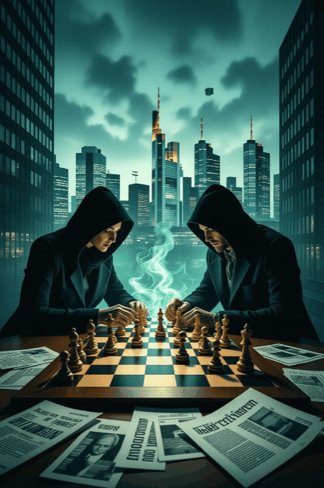 In the heart of Frankfurt’s financial district, a dark game of real estate chess unfolds. Skyscrapers become pawns, manipulated by shadowy figures under the watchful eye of a manipulated media.