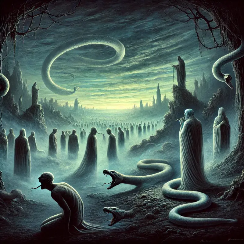 โTell me, O Keeper of Secrets ๐,โ Petros beseeched the Risen One, โWhat doom โ ๏ธ awaits this man who drank the cup you offered? Shall he ride the chariot of fire ๐ฅ like Elias? Or descend to Sheolโs maw, as the traitor whose bowels burst forth?โ