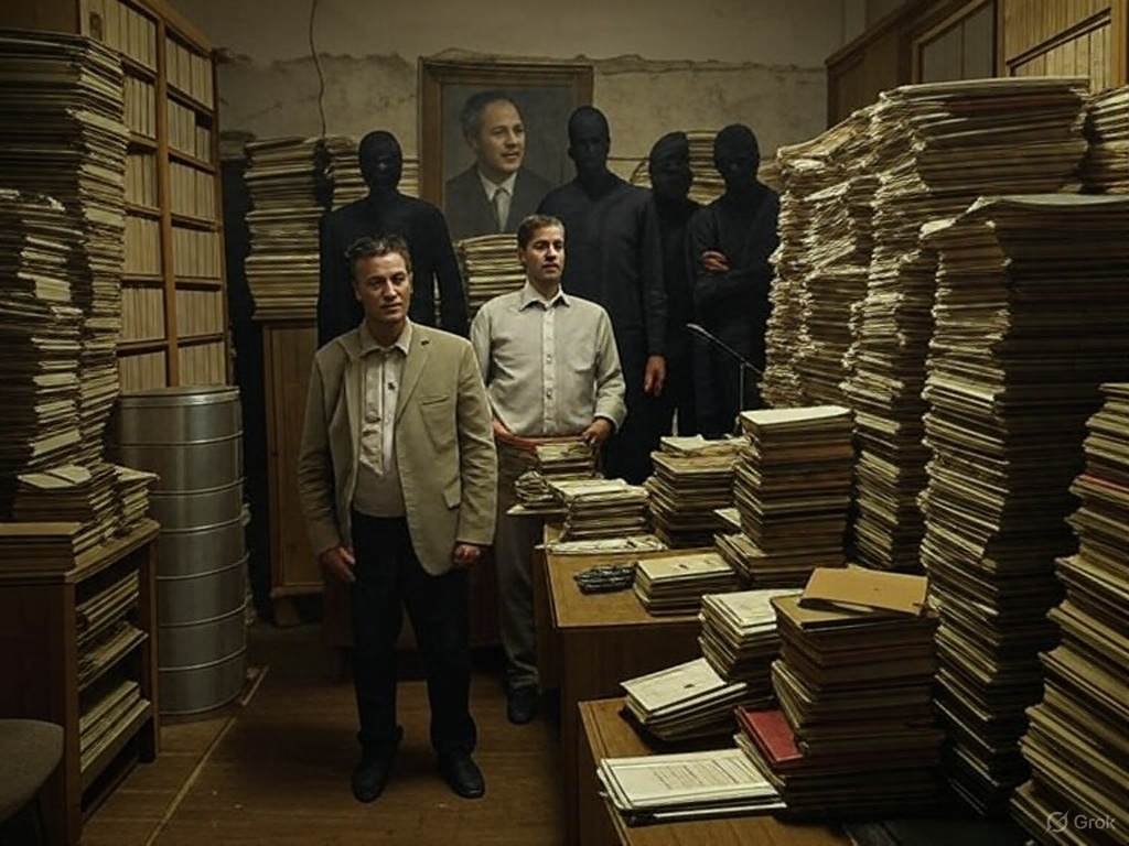 Szene: Berlin, 2025, ein Archiv wie ein Mausoleum, vollgestopft mit den Überresten der Stasi-Herrschaft. Regale biegen sich unter 111 Kilometern Akten, Karteikarten flattern wie Geister, und 15.000 Säcke zerschredderter Dokumente murmeln im Halbschatten. Ein Porträt von Erich Mielke hängt schief an der Wand, als wolle es flüstern: „Ich bin noch hier.“ Der Raum riecht nach Staub, Angstschweiß und dem Moder der DDR-Vergangenheit. Es ist ein Ort, an dem die Zeit sich selbst betrügt, ein Ort, an dem die Täter zu Archivaren wurden – eine Grass’sche Groteske.