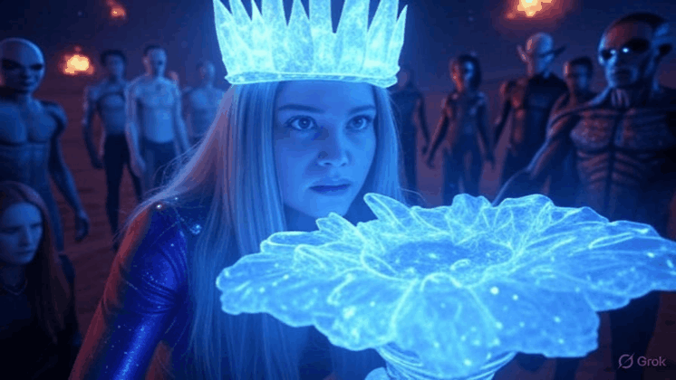 - Amanda Waller (DC – Morally Grey Strategist) 📋⚖️: Commands a holographic control grid, forced into a transgender power-carnival-dance by Janelle’s scepter and crown, kneeling with a reluctant glitter-bow. Bio: Ruthless tactician hailing the carnival queen. / Kommandiert ein holografisches Kontrollgitter, gezwungen zu einem transgender Macht-Karneval-Tanz durch Janelles Szepter und Krone, kniet mit einem widerwilligen Glitzer-Bogen. Bio: Skrupellose Taktikerin, die die Karneval-Königin preist.