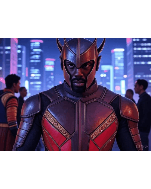 - Killmonger (Janelle’s Feral Lover) 🐆⚔️: Unleashes gender-shifting vibranium claws, slashing Sivana’s drones into chrome-panthers, kissing Janelle in a neon frenzy. Bio: Wakandan warrior, Janelle’s lover, fueling Mars’ chaos. / Entfesselt geschlechterwechselnde Vibranium-Krallen, zerschneidet Sivanas Drohnen in Chrom-Panther, küsst Janelle in einem Neon-Wahn. Bio: Wakandanischer Krieger, Janelles Geliebter, der Mars’ Chaos antreibt.