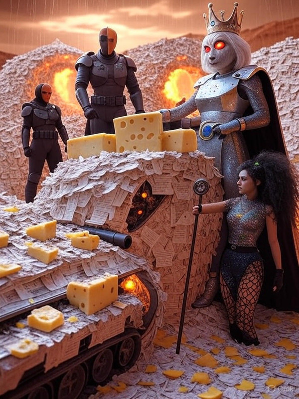 - Janelle-Sauron 👑🧀💣 – Embracing Super Villain Syndrome, launches devastating Gorgonzola nukes, roaring, “Bane’s reign ends in cheese and traps! 💥📄”