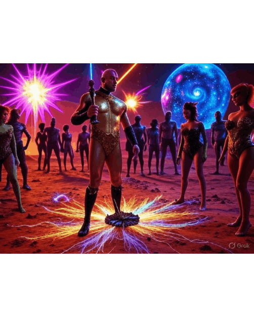 The Martian horizon spirals into a transsexual rhapsody frenzy. Shadow-comets morph into half-prism, half-cosmic hybrids, shifting genders under Zoom’s speed-roars and Poison Ivy’s pheromone hum. Cyber-Phoenix’s explosive starburst torrents flood the sky with neon chaos, hailing Janelle’s frenzy. The rhapsody throbs with euphoric, cosmic, and quantum madness.