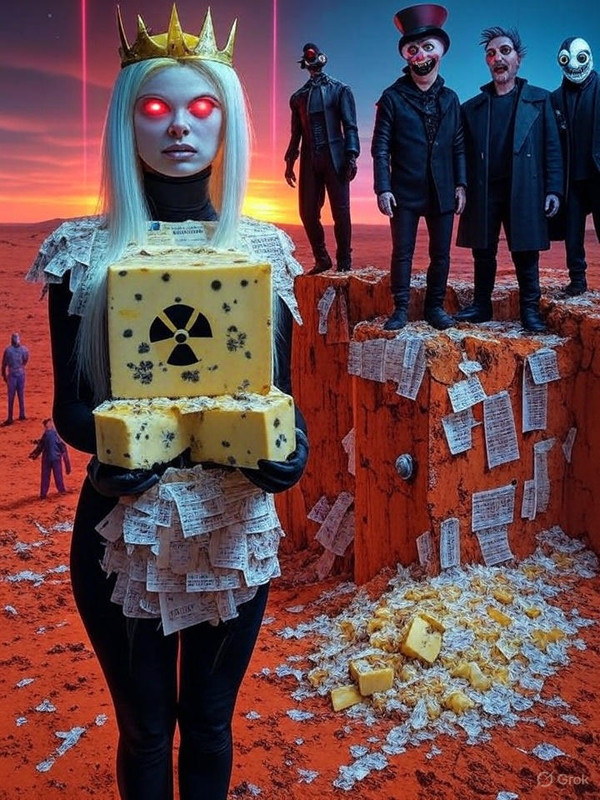 🌌 On the crumbling biomechanical pulp fortress 🏰📜, hinterfozzige Janelle Sauron 👑🧀, her fetish empire now a radiant force fueled by radioactive Gorgonzola, intensifies her war against Bane’s tyranny with Jigsaw/John Kramer 🎭🪚 adding lethal traps. Trained by Baron Zemo 🎩🔫 and Mr. Hinterfozzig 🕵️♂️🤡 in the art of hinterfozzige chaos, Janelle’s dominion grows. Supported by her hapless husband Dumb Tom 🍺🤦♂️ and PR strategist Beatrix Lestrange 🕸️🔮, the empire thrives. Accountant Jezzebel Colony-Us-Slit 💰📊 keeps the finances in check, while General Zod ⚡👑 rises stronger, Veyra ⚔️ sparks a glitter revolution, and Divine 💎 turns the neon rave into a weapon of seduction. Schizo-Petes 📢 amplify their protests, Rebel Janelle 🧀 unleashes eco-fetish attacks, Klausi 🚾 floods with sewage memes, and Cesare Borgia ⚔️ leads skeletal knights through a paper tempest. Kaiser L’s Paper T-Rexes 🦖 melt in cheese torrents as Jigsaw’s traps and Zemo’s revenge close in on Bane, driving the Martian colony toward total ruin! #FetishEmpire #NeonUprising #MarsMayhem