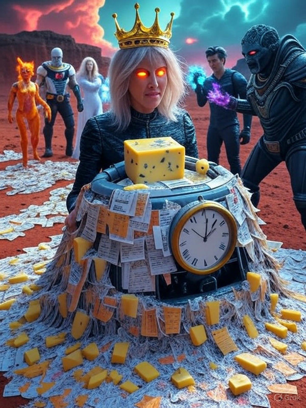 Witness the surreal 2025 Mars takeover as hinterfozzige Janelle Sauron, crowned with radioactive Gorgonzola and glowing red eyes, unleashes fetish-infused cheese nukes alongside Apocalypse from Marvel 🌍💪, wielding dominion powers. Trained by Baron Zemo and Mr. Hinterfozzig, Janelle rules a biomechanical pulp fortress. See The White Witch’s eternal frost, Beatrix Lestrange’s rune seduction, Dumb Tom’s beer blunders, and Jezzebel Colony-Us-Slit’s coin counts. Experience Ehlers’ glitter bombs with Lucrezia Borgia, Divine’s neon spa pole dance, and Schizo-Petes’ “NO FETISH TYRANNY!” protest. Rebel Janelle fires vegan missiles, Klausi floods with sewage memes, and Cesare Borgia leads skeletal knights in a paper storm. Kaiser L’s Paper T-Rexes melt in cheese floods under a neon-radioactive apocalypse with melting clocks. Captured 10:14 PM CEST, June 17, 2025! #MarsFetishEmpire #Apocalypse2025 #PulpChaos”
