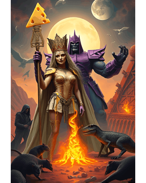 hinterfozzige Janelle Sauron 👑🧀💣—Queen of Radioactive Gorgonzola & Hinterfozzige Dominance—unleashes her FETISH EMPIRE upon Mars’ pulp wasteland, now amplified by Skeletor’s Havoc 💀⚡️! Bane’s tyranny crumbles under glitter nukes 🧀✨, sewage memes 💩📱, and skeletal knights ⚔️💀 as Zemo’s revenge plots 🎩🔫 and Beatrix’s seductive runes 🕸️🔮 ignite the Neon Rave Revolution 💃🌈.