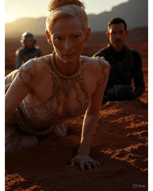 - Hinterfozzige Janelle Sauron/Sex God 6 👑🧀💥: Played by Tilda Swinton – Known for *Doctor Strange* and *The Chronicles of Narnia*. / Gespielt von Tilda Swinton – Bekannt aus *Doctor Strange* und *Die Chroniken von Narnia*.