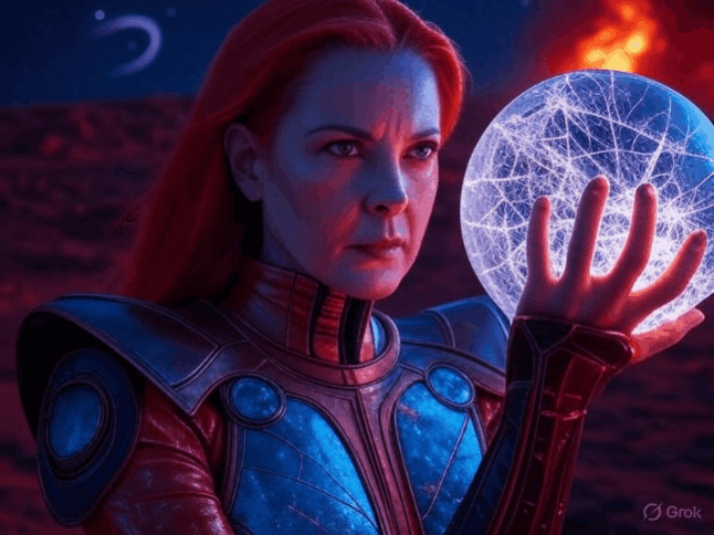 The Martian horizon explodes into a transsexual tyranny rebellion. Shadow-comets morph into half-prism, half-galactic hybrids, shifting genders under Zoom’s speed-roars and Poison Ivy’s pheromone hum. Cyber-Phoenix’s ultra-charged starburst torrents flood the sky with neon anarchy, hailing Janelle’s and Ozai’s reign. The tyranny pulses with euphoric, cosmic, and quantum madness, amplified by her crystalline orb and his flames.