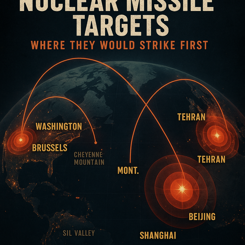 A cinematic nuclear strike forecast showing the chilling reality of strategic targeting: from Washington D.C. and Brussels to Tehran, Beijing, and Silicon Valley. Based on declassified OPPLAN logic and first-strike doctrines, this dramatic visualization reveals the overlooked infrastructure and geopolitical decapitation zones of a global nuclear exchange.